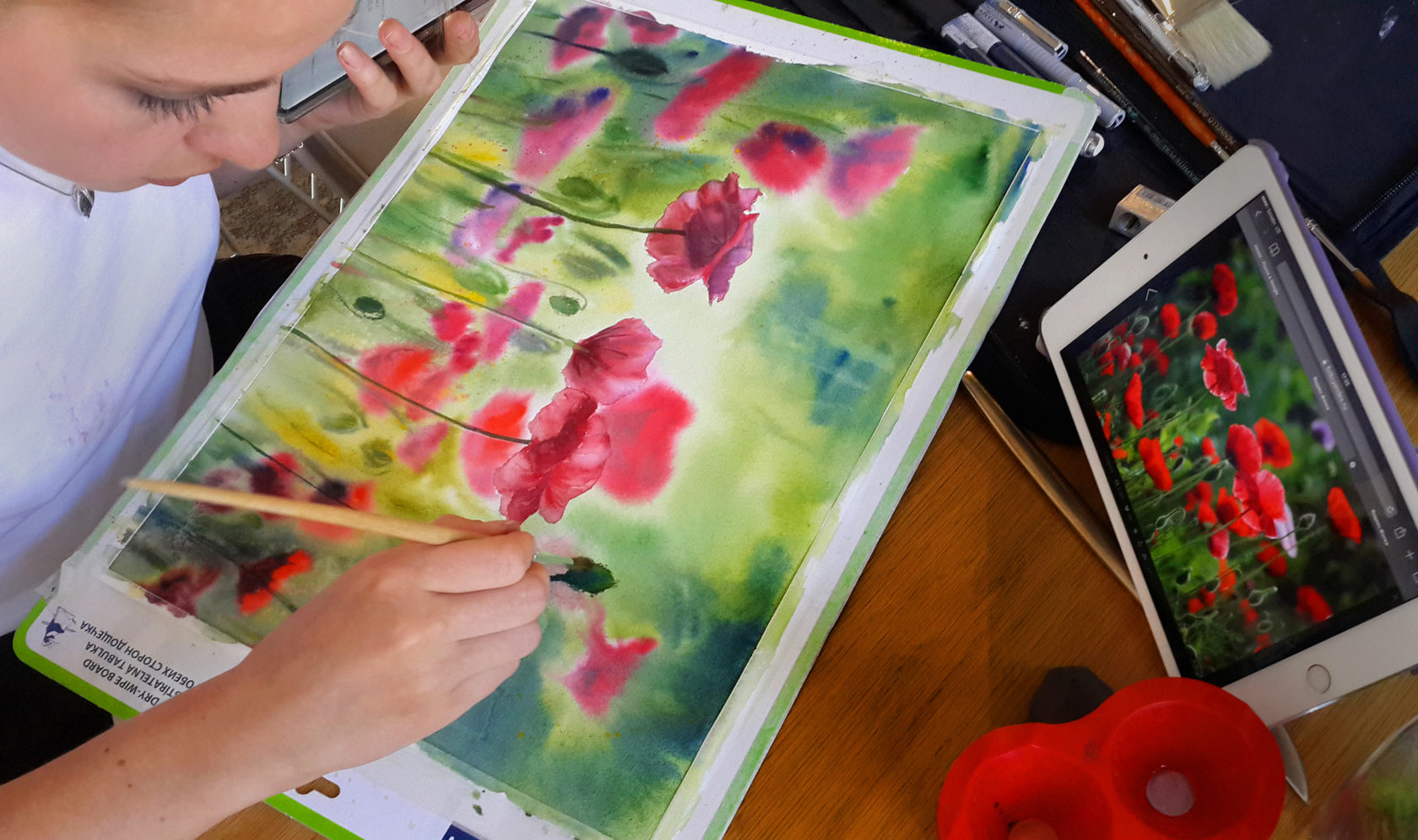Вы занимаетесь там, где вам комфортно в компании единомышленников или индивидуально. Нужен только доступ к интернету, краски, кисти, бумага и хорошее настроение
